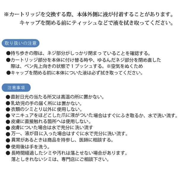 ・携帯できる応急処置用のシミとりペン、お得なカートリッジ3本セット。