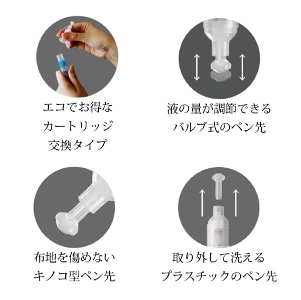 ・ペン先が丸い樹脂製なので生地を痛めることもありません。