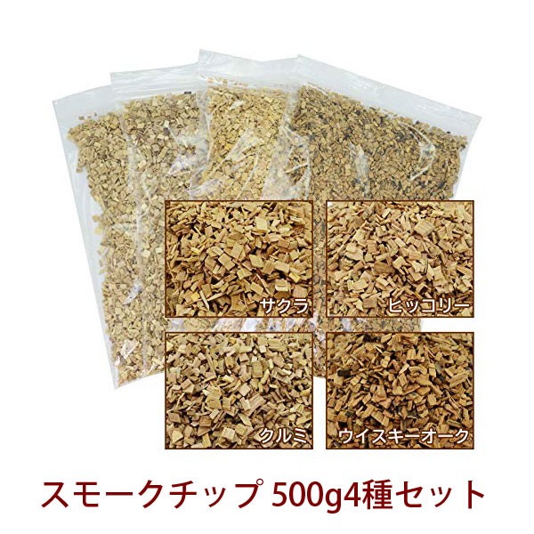 スモークチップ 500g 4種セット サクラ/クルミ/ヒッコリー/ウイスキーオーク 燻製用チップ キャンプ アウトドア 自家製燻製