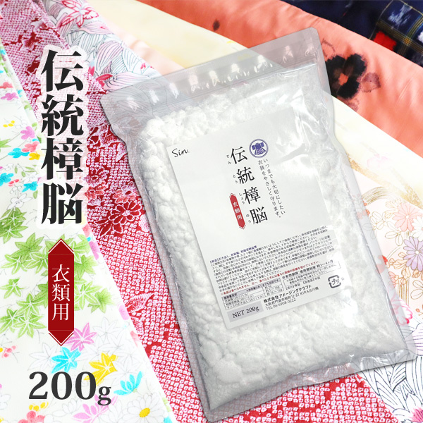 衣類 防虫剤 伝統 樟脳 200g 小分け用パック約40枚付き 衣類用 防虫 しょうのう 楠 クスノキ タンス クローゼット 衣装ケース 和服収納 着物 メール便発送
