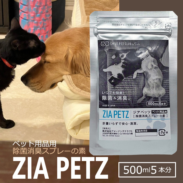 ペット用 除菌消臭スプレーの素 5包(2.5L分) 次亜塩素酸水 200ppm 効果測定試験済 ペット用トイレ 消臭 除菌 SMILE PET CLUB