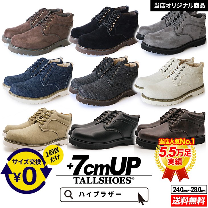 シークレットシューズ スニーカー ブーツ メンズ 7cmアップ TALLSHOES トールシューズ 人気No.1モデル スエード デニム レザー 軽量 耐久性 身長アップ 送料無料