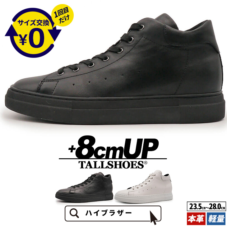送料無料 シークレットシューズ スニーカー メンズ 白 黒 ハイカット 紐 本革 8cm 身長アップ インヒール 厚底 クッション性 靴 3E 春 夏 プレゼント Hi!BROTHER