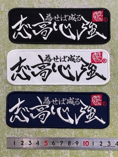 designerMA2DAの座右の銘として、Tシャツ・タオルなどに使用してた『志高心強〜為せば成る!』刺繍ワッペンです。