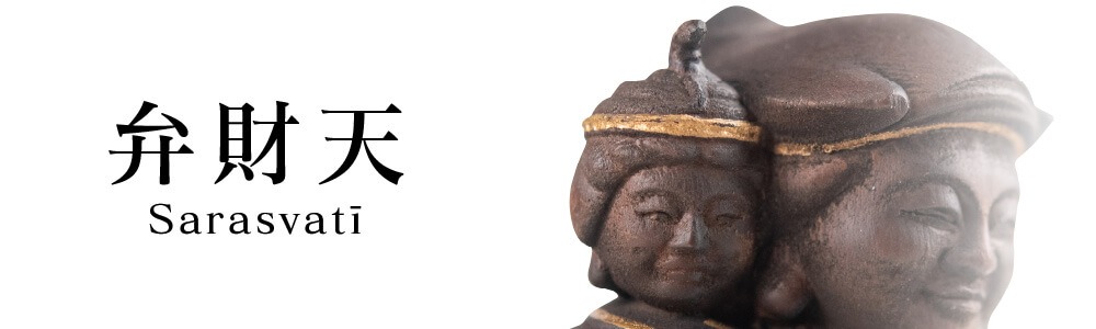 ◎福徳財宝と技芸の福の神《弁財天》弁財天は古代インドでサラスヴァティーと呼ばれた川を神格化した女神が、仏教伝来時に『金光明経』を通じて中国から伝わり、やがて七福神の一柱となった福の神です。水が流れるせせらぎの音から音楽の神となり、そこから広く技芸・文芸などの才能をもたらす神となりました。現在では「才」が「財」へと変わり福徳財宝を授ける福の神としても篤く信仰されています。財運の象徴とされる白蛇は弁財天の使者とされます。