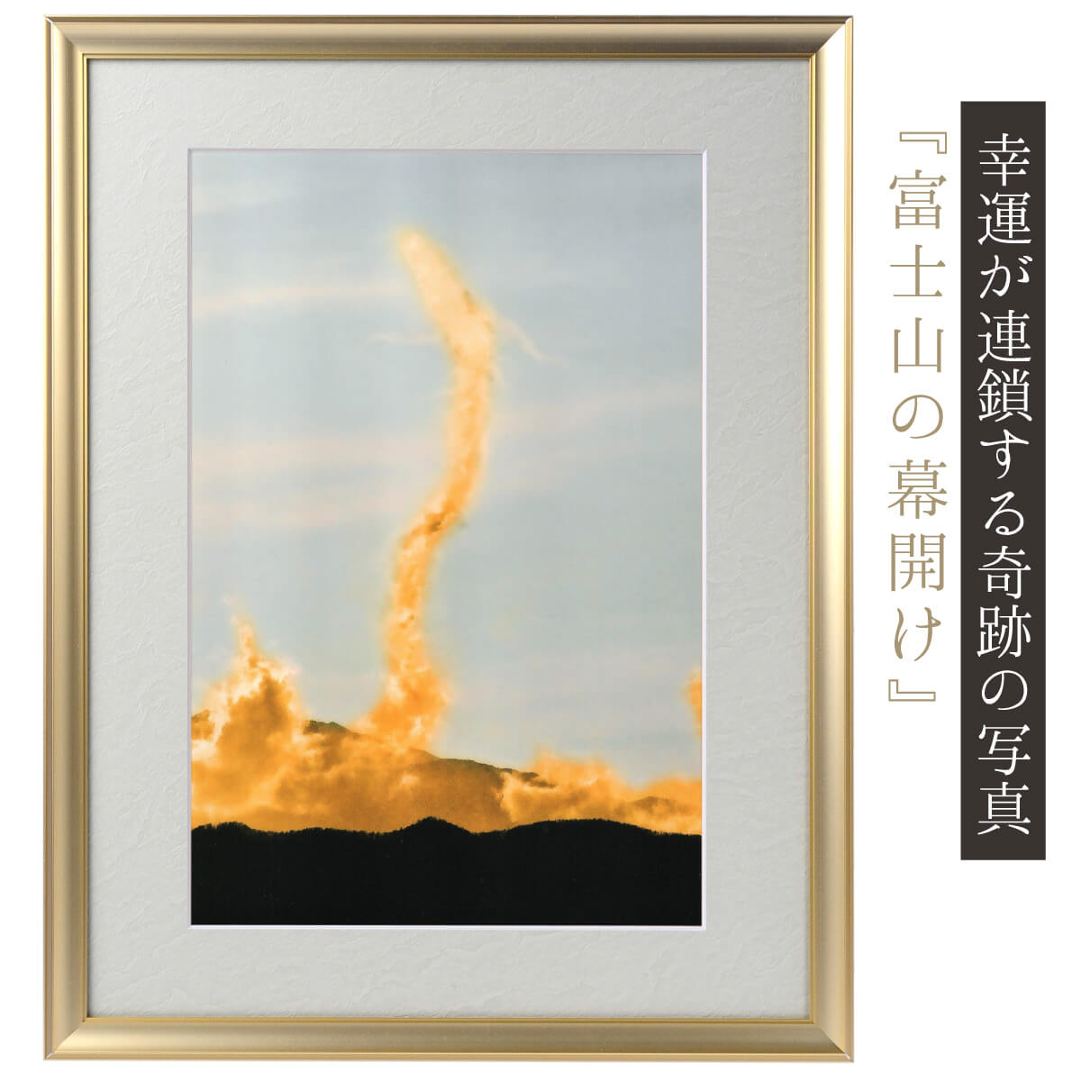 金龍の絶大なる開運力をあなたにも!伝説や神話で語られる物体には、神に通じるような事で語られる不思議な言い伝えがあります。この写真は、龍の中でも最上位に位置する金色に発光する龍を捉えた写真で、通常の撮影では遭遇しない一瞬を撮影した貴重なカットです。
