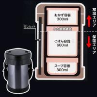 ●温かいご飯でがっつりランチ!保温弁当箱●ご飯とスープは温かく保温、傷みやすいおかずは常温でキープ。●セット内容:保温容器、ごはん容器、おかず容器、スープ容器、箸・箸ケース。●丈夫で熱が逃げにくいステンレス断熱2重構造の保温容器でほかほかキープ。●ごはん容器蓋も断熱構造なので、その上に収納するおかず容器には熱を伝えにくい。●ごはん容量、お茶碗およそ3杯分!食べ盛りに嬉しい大容量サイズ。●保温効力:60度以上(6時間)●実容量:ごはん容器/0.6Lおかず容器/0.3Lスープ容器/0.3L●サイズ(約):幅15.4×奥行14.7×高さ23.7cm●重量(約):1kg●中国製
