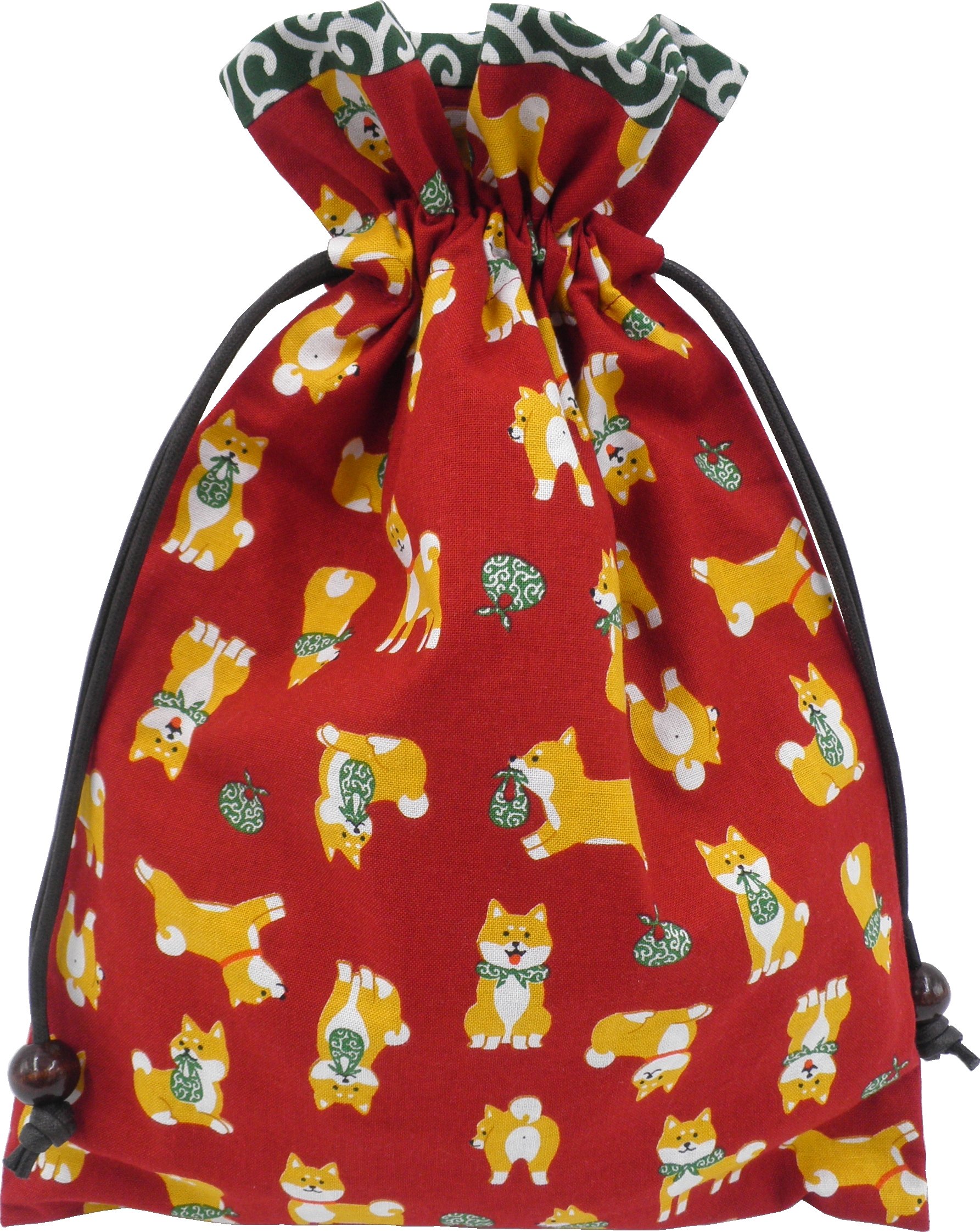 巾着袋 裏地付き 和柄 赤 柴犬柄×唐草 ハンドメイド 日本製 御朱印帳袋 御朱印帳入れ 和小物 和雑貨 お年賀