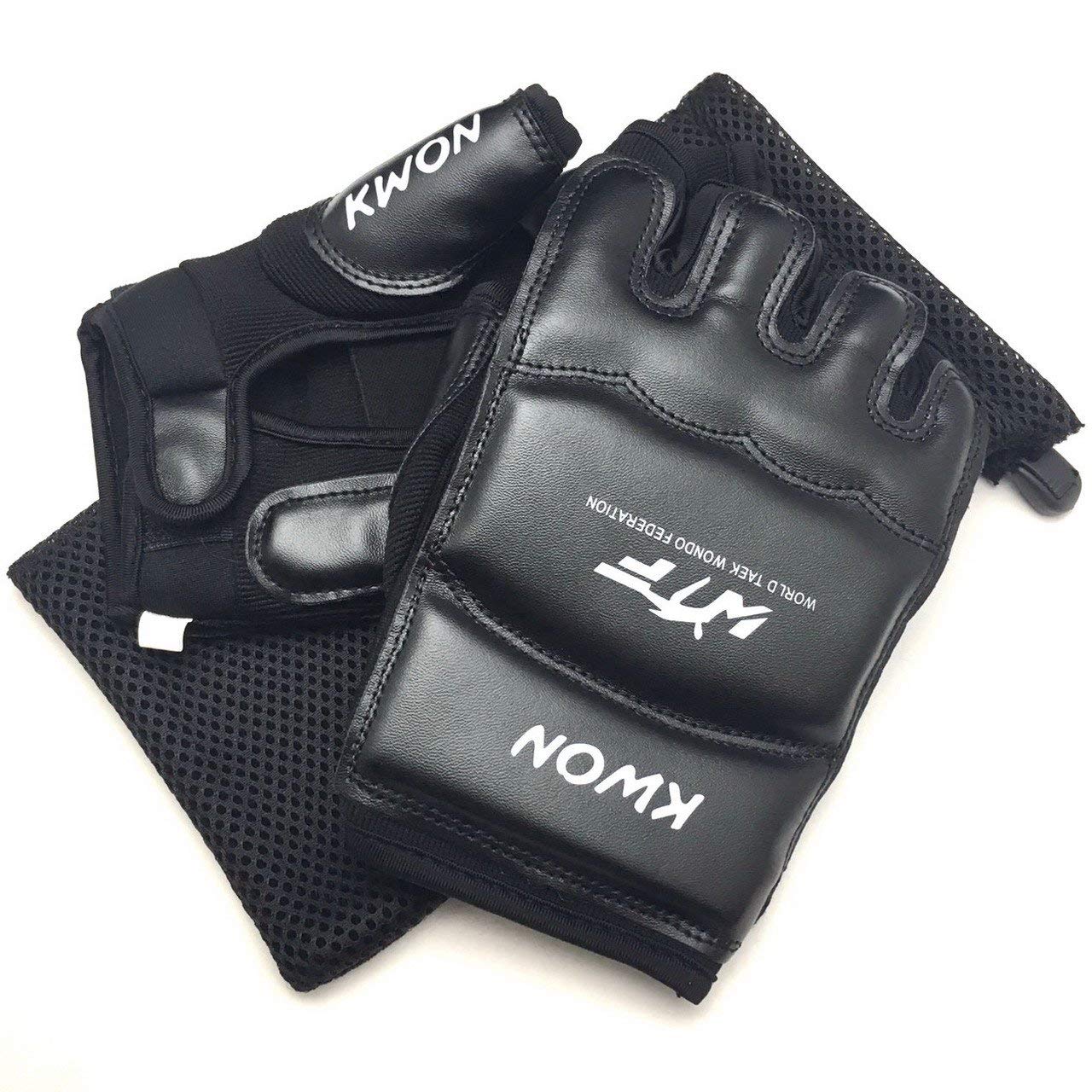 オープンフィンガーグローブ 子供用 大人 ジュニア キッズ 黒 練習用 総合格闘技 空手 テコンドー 収納袋付き (ブラック, M)