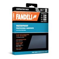 メキシコ発!世界30ヵ国で愛用されるFandeli(ファンデリ)の耐水サンドペーパー。1927年の創業以来、世界中のプロフェッショナル及びDIY愛好者に支持され続けています。23cm×28cmでプロ仕様の大判サイズで、用途によって使いやすい#220(5枚)、#320(10枚) 、 #400(10枚) の25枚入った耐水紙ヤスリセット。しっかりとした厚みのある丈夫なスーパーヘビータイプで、ハンドサンダーはもちろん、DIY用の電動研磨機にも使える耐水サンドペーパーセットです。