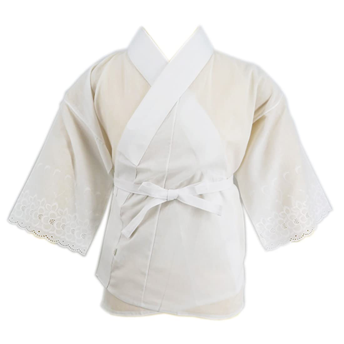 ・「スカイホワイト」サラシ肌襦袢。 ・えもん抜き、紐付きで衿が抜きやすく詰まりにくい。 ・抜き加減を調整できるえもん抜き付きなのでご自分で着付けをされる方にもおススメです。 ・空気精紡機で作られた糸を使用。風合い、吸湿性、着心地ともに優れています。 ・原料は厳選された高級糸を使い要所を研究して肌触りもよい縫製がされています。 ・襦袢を着用しなくても良い和装肌着です。 ・絽襟付きの夏物を浴衣の下に着れば浴衣を着物のように着ることができます。 ・吸湿性に富んだ爽やかな着心地。 ・この製品は厳選された生地を使用、特に入念な仕立てがしてあります。 ・日本製