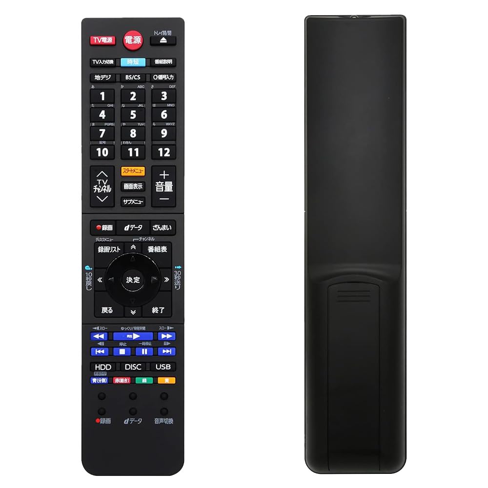 仕様・注意事項 対応機種:東芝レグザレコーダー(上記記載モデル) 電池:別売り(単3形×2本) セットアップ:ほとんどの機能は即使用可能/テレビ連携時は設定が必要な場合あり ご注意: テレビ・レコーダー側に機能がない場合は操作不可 純正リモコンと完全同一機能ではないため、詳細は取扱説明書をご確認ください パッケージ内容 レグザレコーダー用リモコン ×1 ※ご購入前に必ずお使いのレコーダーモデルをご確認ください。 このリモコンは、東芝レグザレコーダーの純正リモコン代替品として、 「リモコンが壊れた」「予備が欲しい」という方に最適です! 面倒な設定なしですぐ使える 便利な交換用リモコンです。