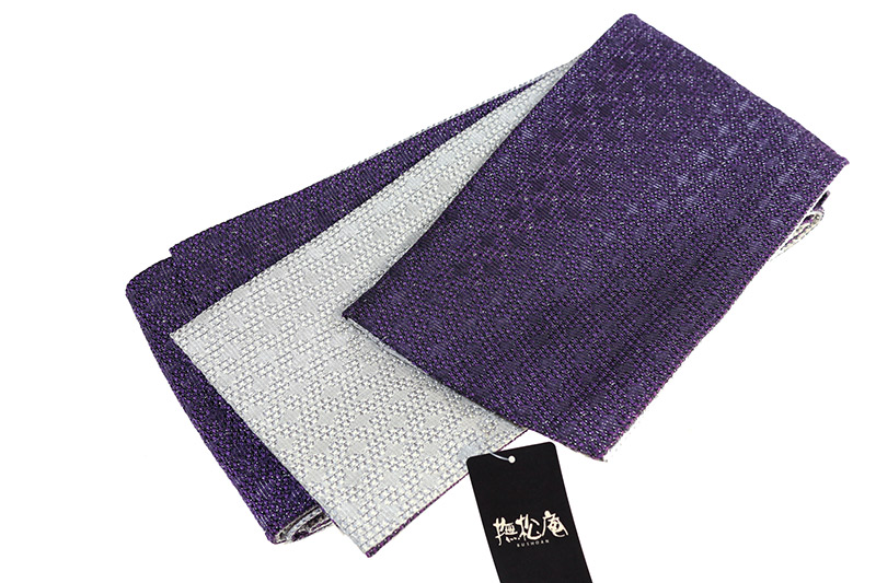 撫松庵 半巾帯 織七宝 紫/グレー 細帯 夏物 ゆかた帯 リバーシブル レディース お仕立上がり 日本製