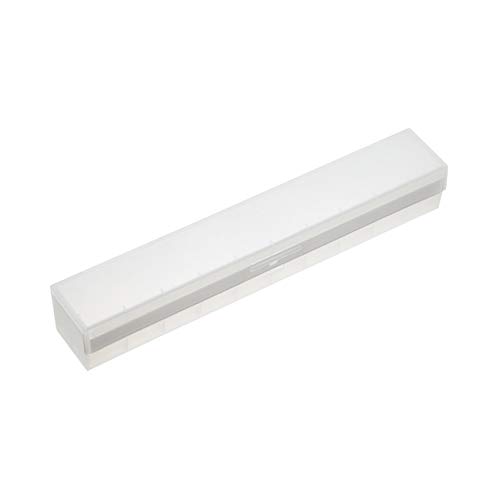 ・軽くて耐久性のあるポリプロピレン素材を無着色のまま使用している食品包装ラップ用のケースです。ラップの巻き戻りや飛び出しを防ぐために、本体下側を高くし滑り止め部分を長くしています。別売りのマグネットを付けると冷蔵庫など磁性のある壁面に貼り付けられます。