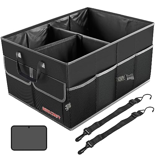 AWELCARFT トランク収納ボックス 折り畳み式 車用 滑り止め 小物整理 仕切リ板付き 固定ベルト付き 本の収納 DVD収納 子供玩具収納