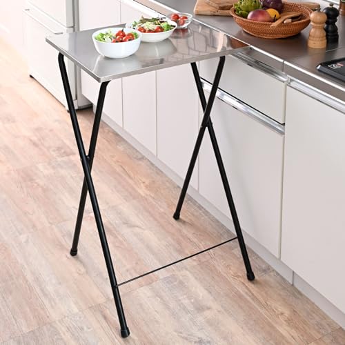 山善(YAMAZEN) テーブル 折りたたみテーブル ハイタイプ ステンレス天板 キッチンカウンター 作業台 幅50×奥行48×高さ85cm キ