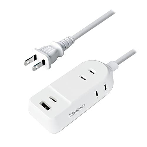 カシムラ 国内・海外両用電源タップ 100〜240V入力対応 コード1m AC3 A/C 2P 2.4A 【ACコンセント3口合計1400W / USB2ポート 合計最大出力12W(5V2.4A)