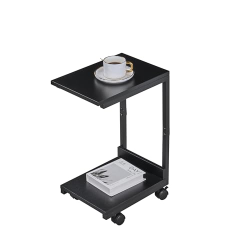 VECELO サイドテーブル キャスター付き 幅約37×奥行約26×高さ約53cm コの字型 2段収納 ミニテーブル ベッドサイドテーブル ソフ