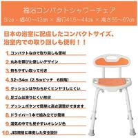 サテライト お風呂椅子 選べる4色 サテライト 福浴軽量コンパクトシャワーチェアー 高さ調節6段階 背もたれ付き オレンジ 1 個