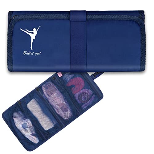 ・?広げると,ファスナーポケット4個付きな,バレエシューズ、トウシューズ、トゥパッド、ダンスソックスなども収納できます。コンパクトに巻き上げられるので持ち運びも簡単です。