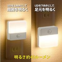 ・【 仕 様 】■ 電源:AC100V 50/60Hz■ 消費電カ:約0.5W■ 使用光源:LED3灯(交換不可)/電球色■ 全光束:約45 lm■ 点灯保持時間:約10秒■ 人感センサー検知範囲:約4m/左右約90°/上下約90°■ 本体寸法:(約)幅70×高70×奥行40mm(プラグ含む)■ 質量:約57g ※屋内用。