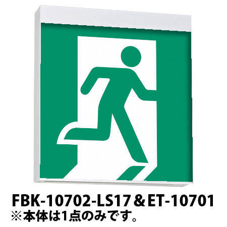 C級天井直付両面誘導灯+C級高輝度避難口表示板(右向き)+C級高輝度避難口表示板セット(左向き) FBK-10702-LS17+ET-10701+ET-10702 東芝ライテック