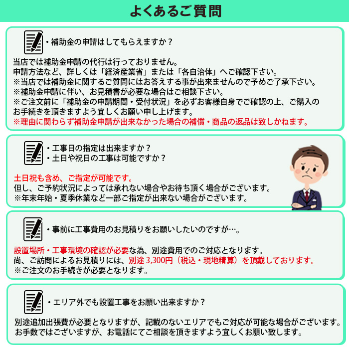 ※理由に関わらず補助金申請が出来なかった場合の補償・商品の返品は致しかねます。