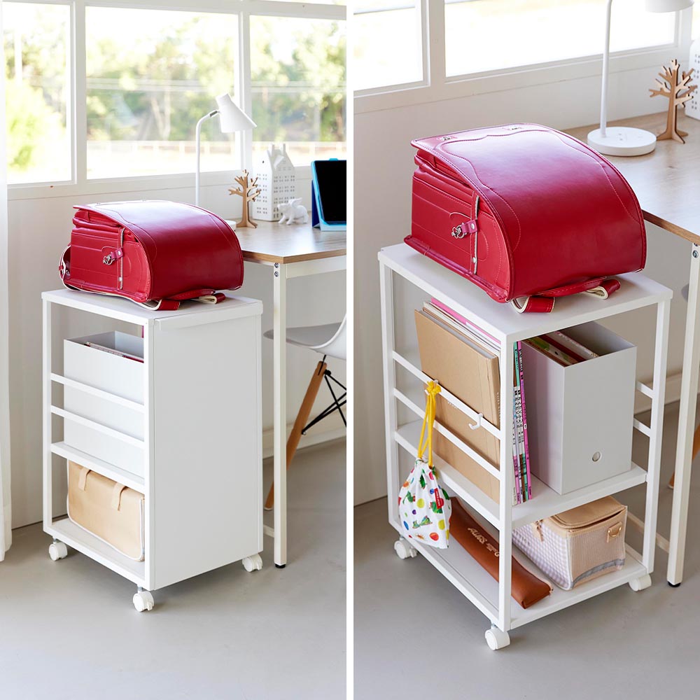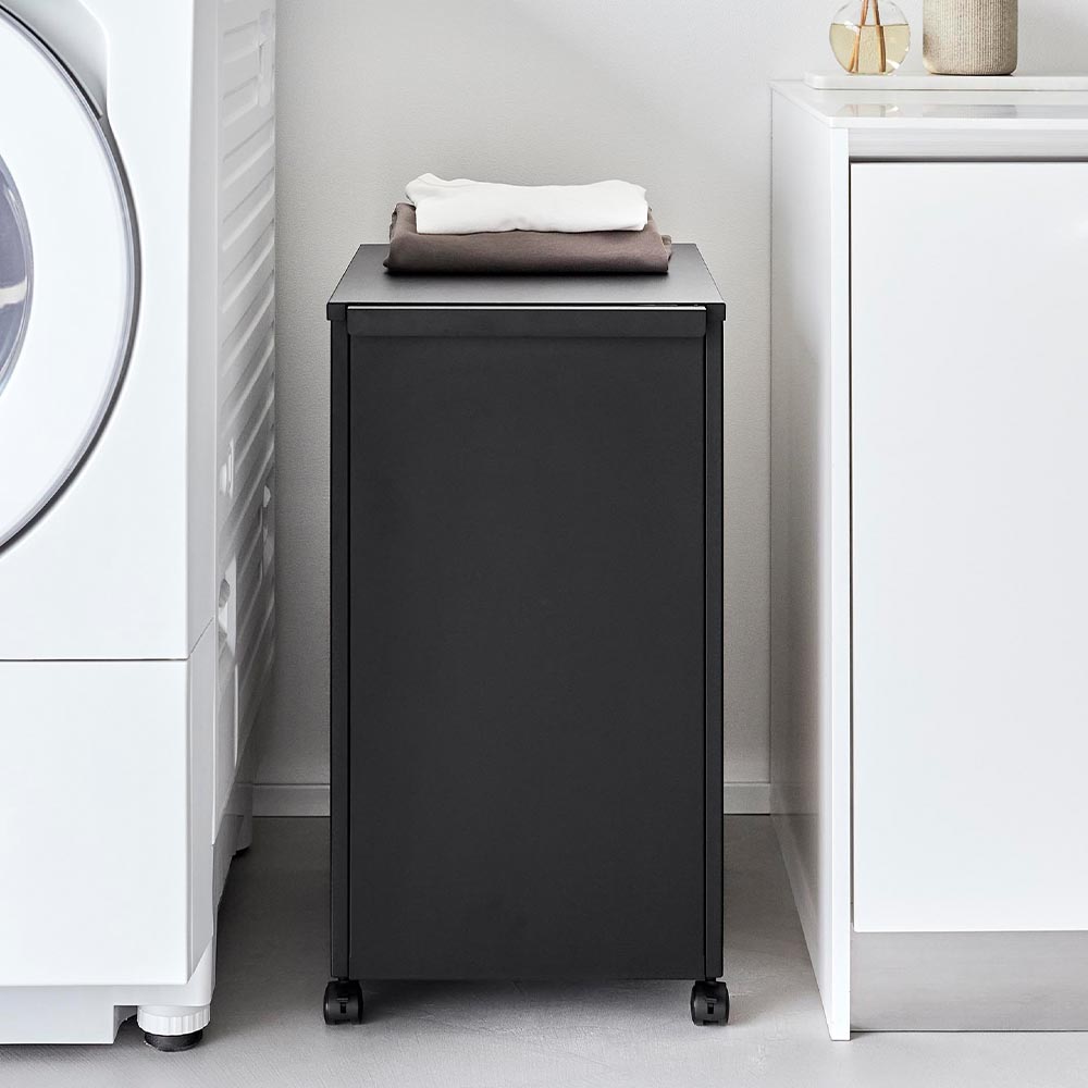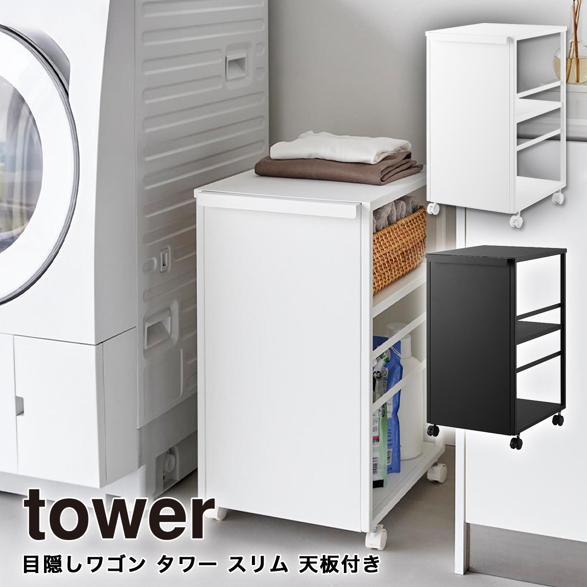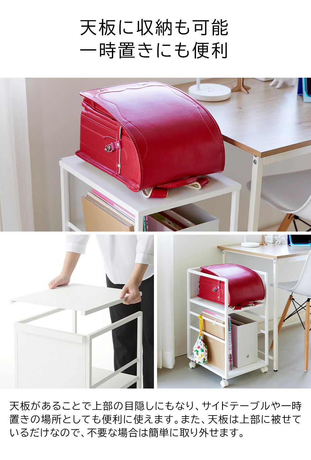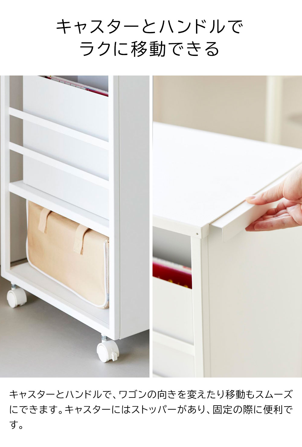 たっぷり収納しても スッキリ目隠し収納ができる 天板付きのスリムなワゴン