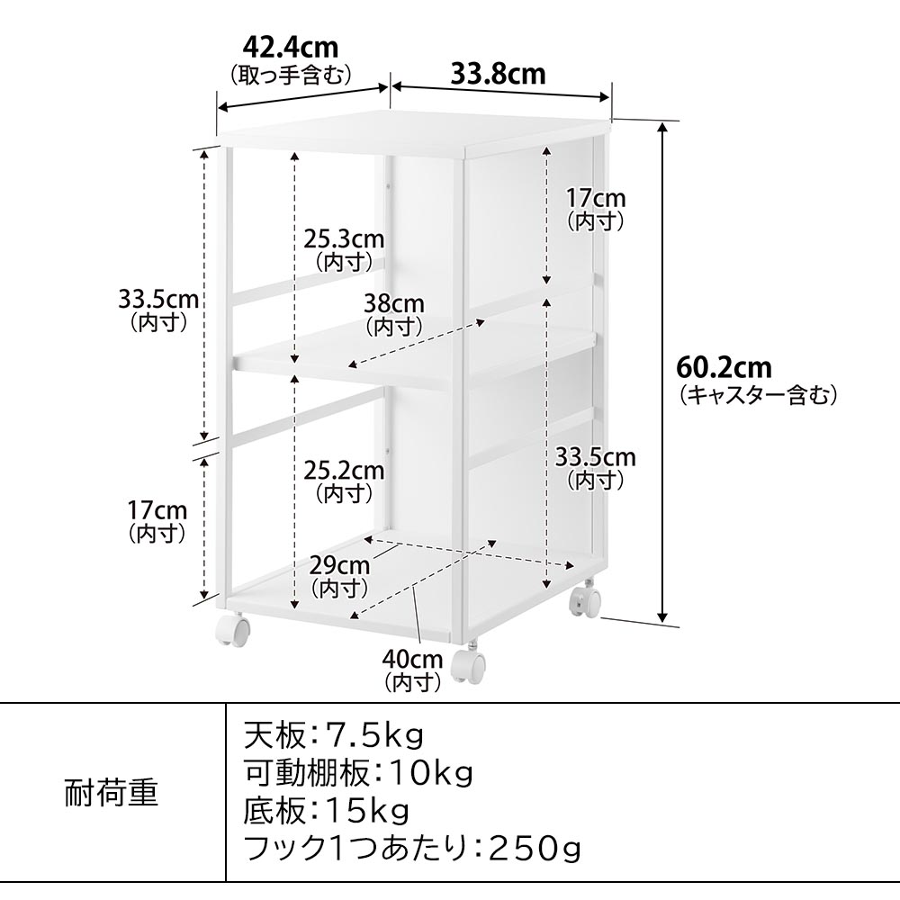 耐荷重 天板:7.5kg/可動棚板:10kg/底板:15kg/フック(1つあたり):250g
