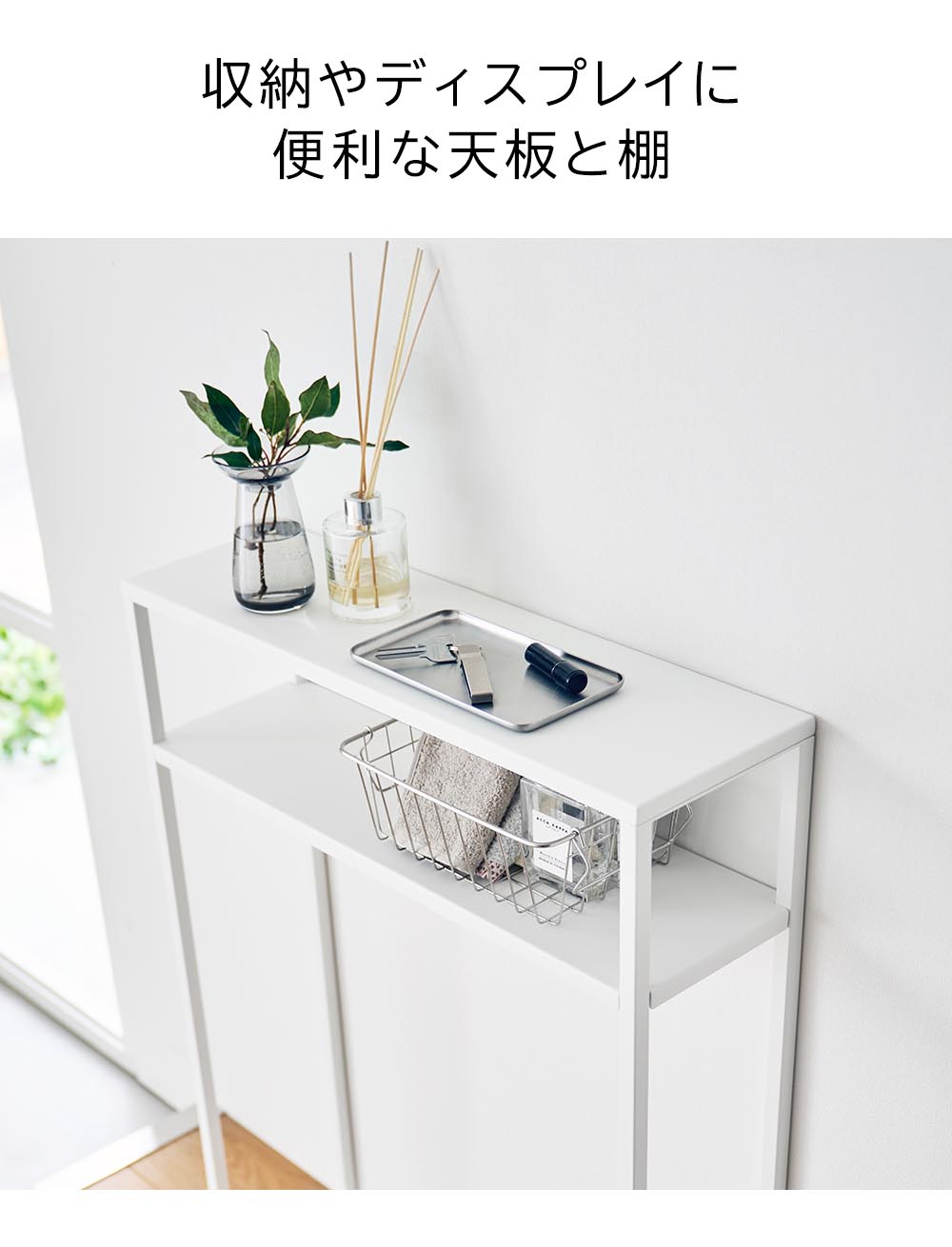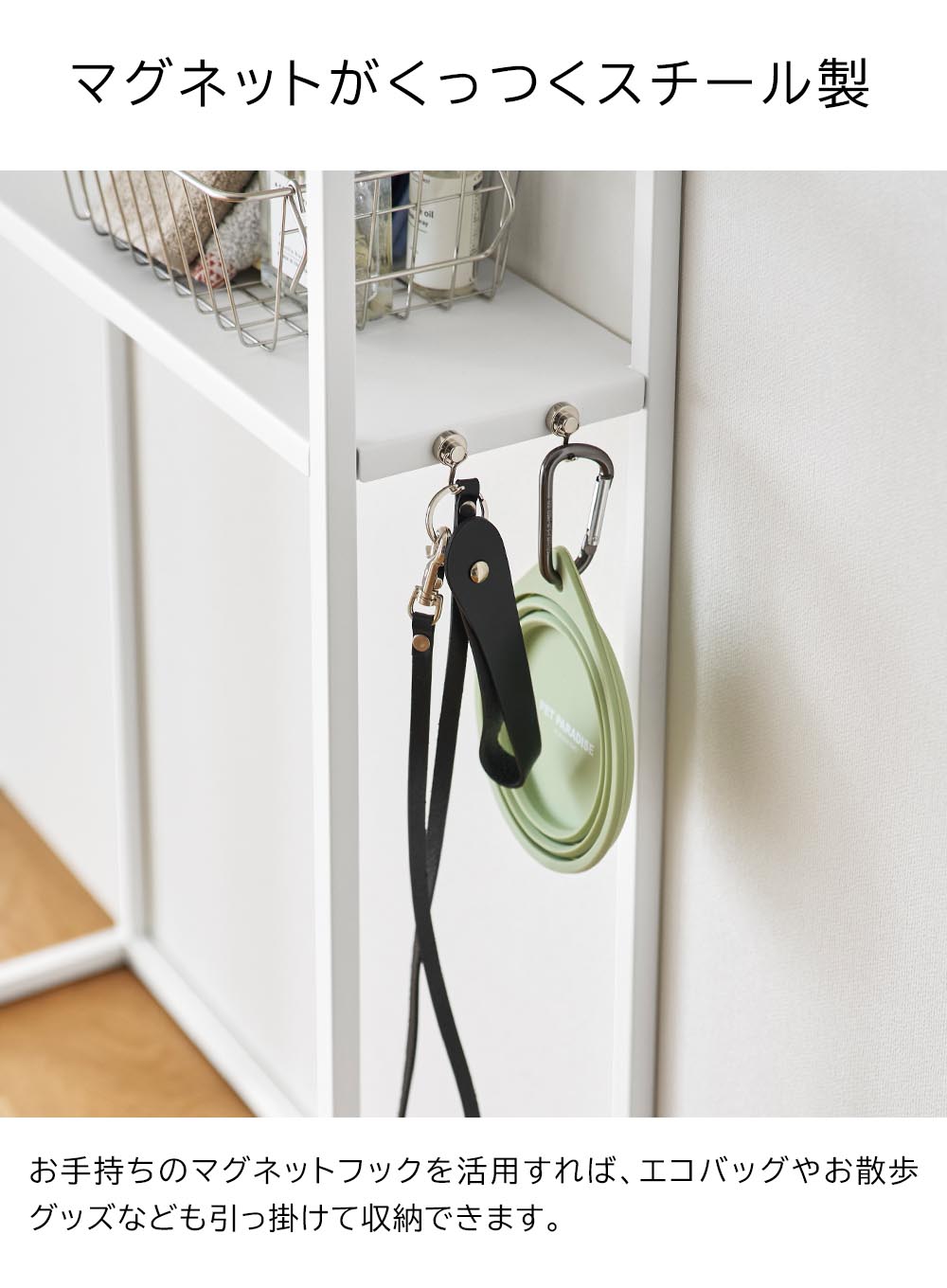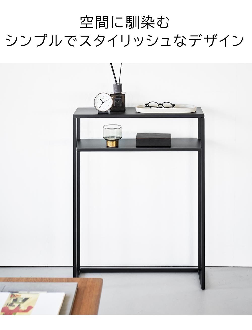 玄関や廊下、リビングなど、飾り棚や収納棚として家中で活躍するマルチな棚付きのコンソールテーブルです。奥行き約18cmとスリムな設計で、置く場所を選ばずすっきりと設置できます。天板と棚付きなので、観葉植物やオブジェを飾ったり、眼鏡や鍵のちょい置きをしたり、細々とした小物を入れたかごを収納したりと、様々な使い方ができます。また、立ったままでも物が置きやすく手に取りやすい高さなのも◎ マグネットがくっつくスチール製なので、お手持ちのマグネットフックなどを活用すれば、エコバッグやペットのお散歩グッズなどを引っ掛けて収納できます。シンプルでスタイリッシュなデザインで、どんな空間にも自然に馴染みます。