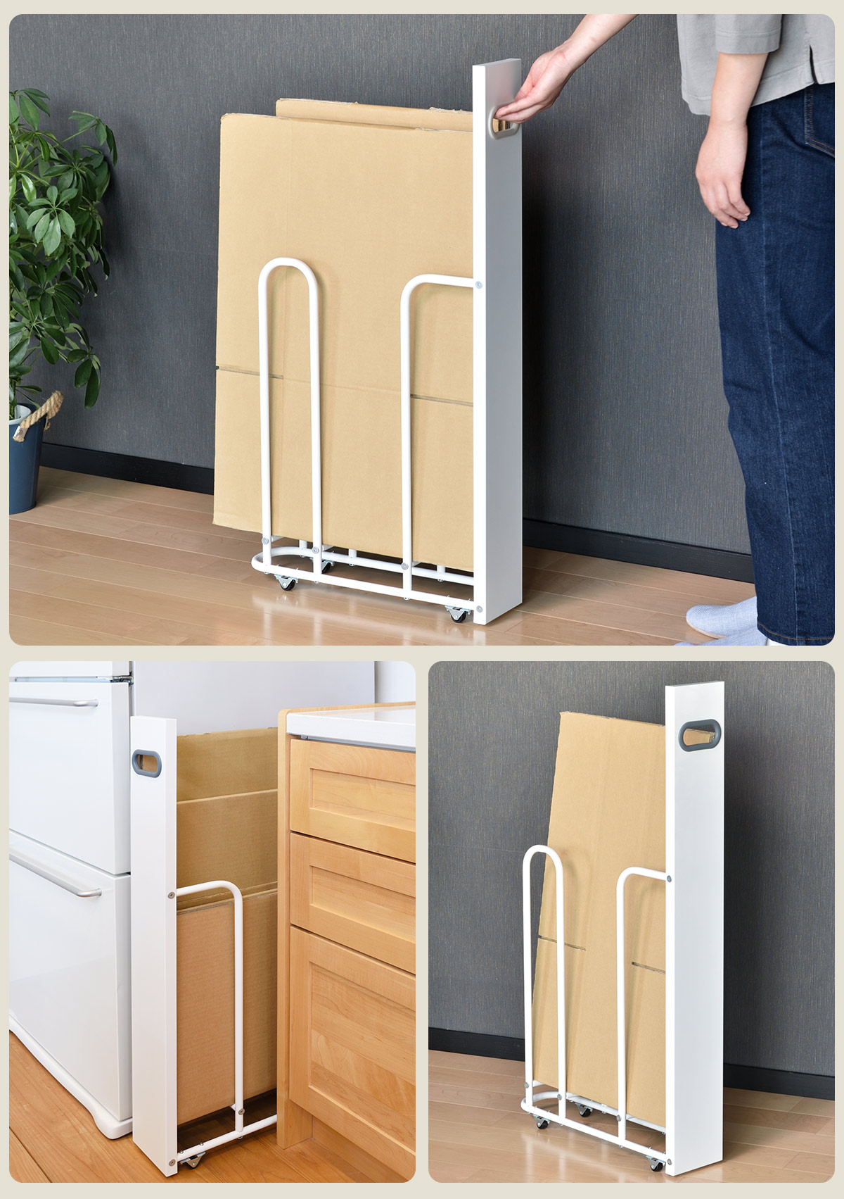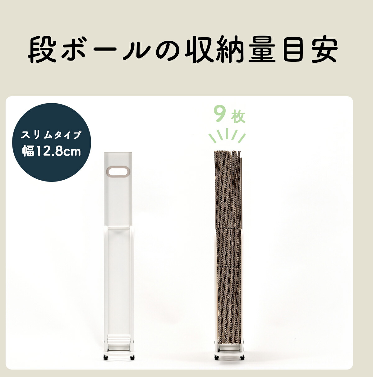 | 収納目安量 | 約9枚(縦 76.5cm×横 54cm×厚さ1cmのダンボール) ※ダンボールのサイズ、形状、厚みによって異なります。 |