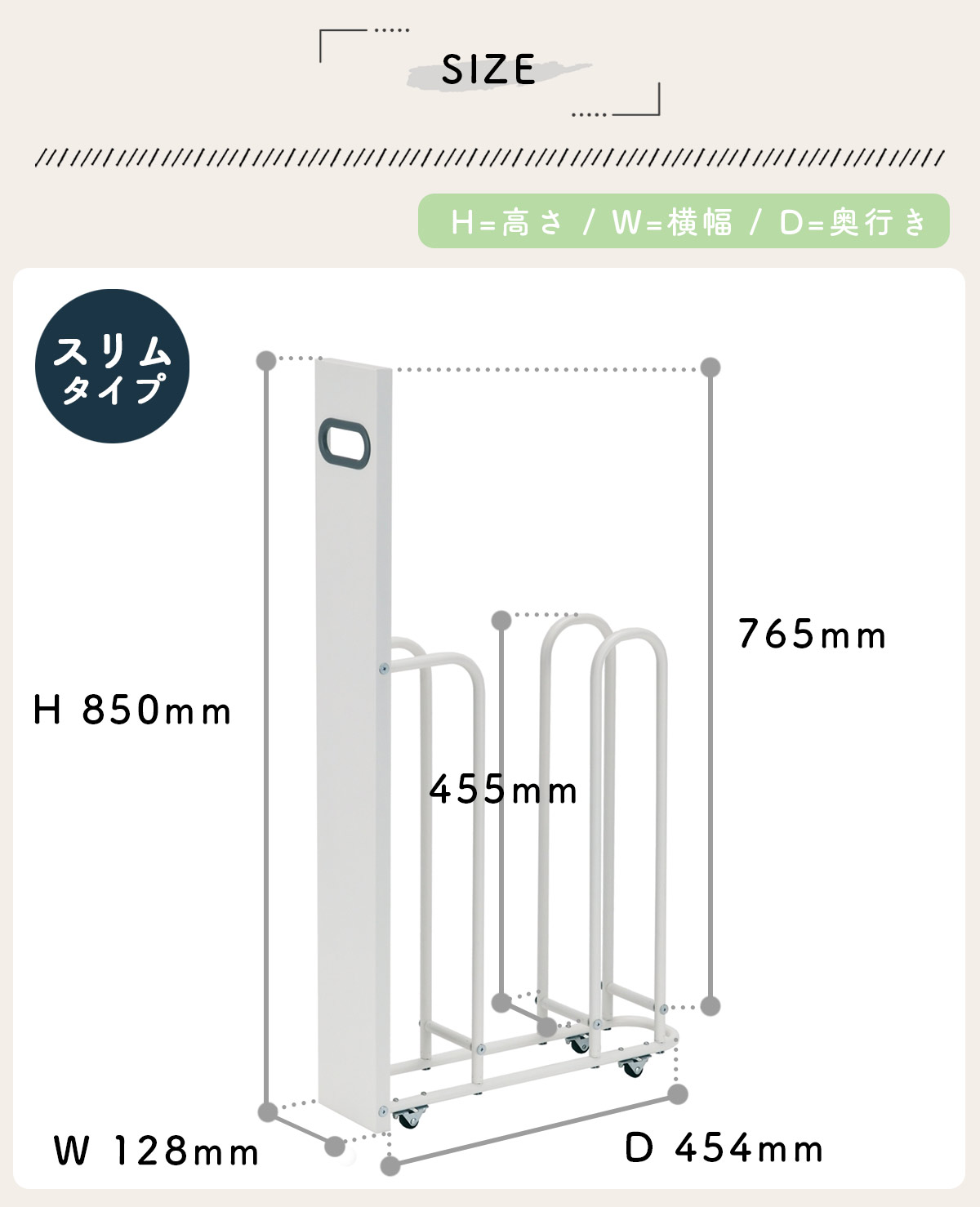 | サイズ | 約 横幅128×奥行き454×高さ850(mm) |