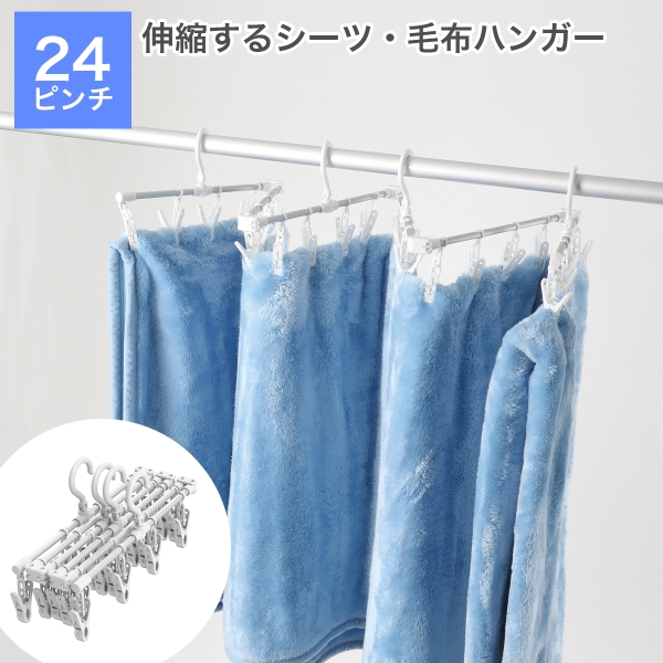 ■おすすめポイント フレームを伸縮させて幅を変えられるピンチハンガーです。 フレームが自在に伸縮するので 狭いスペースでも布団カバーやシーツなどの大きな洗濯物を干すことができます。
