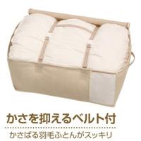 ■おすすめポイント かさばる羽毛ふとんがスッキリ収納できます。 通気性に富む素材を使用しているので、カビがつきにくく保存用に便利です。 シングルの羽毛ふとん(9つ折り)が1枚入るサイズです。 押入れ、クローゼットへの出し入れに便利な持ち手付。 収納物がわかる透明窓付。 上ブタ開き式、両開ファスナー付なので中身の出し入れが簡単です。 ゴミやホコリがつかず、大切に収納できます。 | |