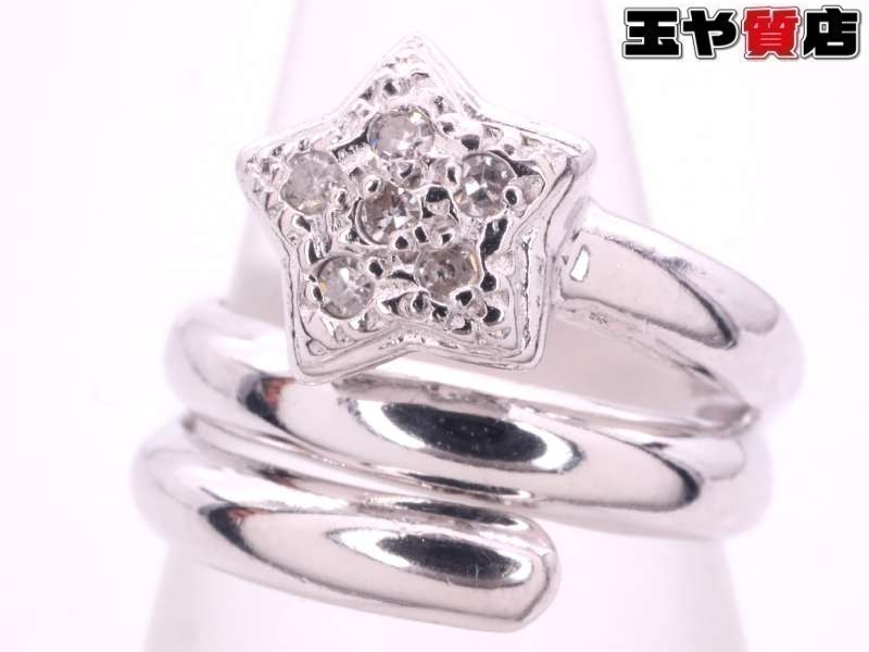 ダイヤ スター デザインピンキーリング5号 K14WG ホワイトゴールド