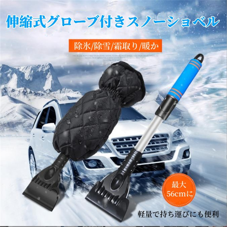 クーポンあり 冬対策応援セール スノーショベル 車用 グローブ付き 伸縮式 雪かき スコップ 手袋付き 雪落とし 氷 雪 霜取り コンパクト 除雪 除