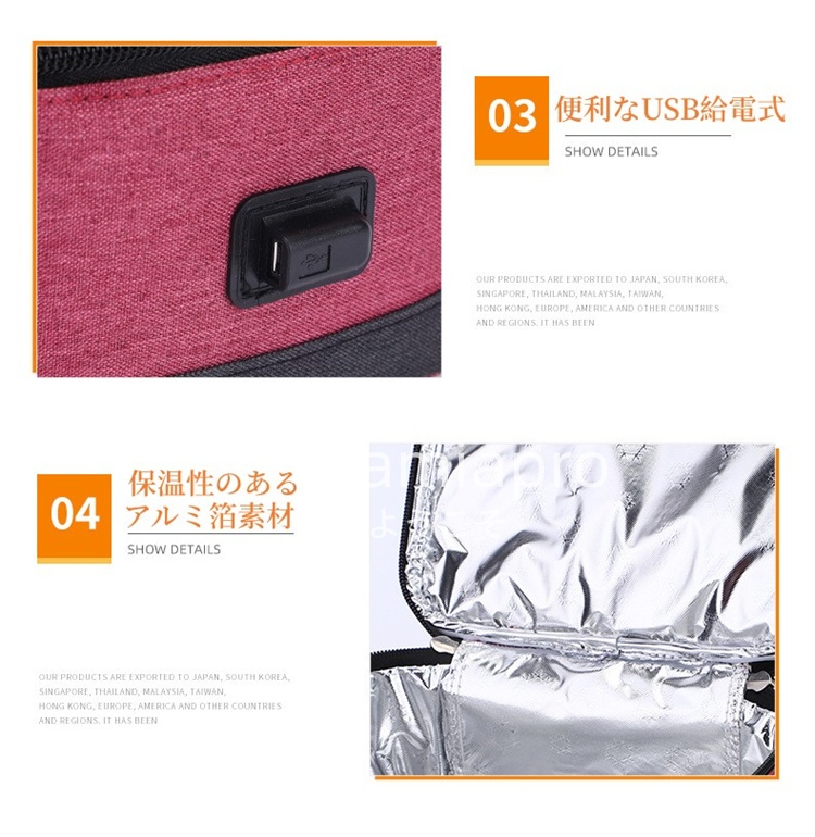部分短納期 保温バッグ ヒーター内蔵 USB給電式 お弁当 電熱バッグ ランチバッグ 車載用 洗える 保温 保冷 バッグ 保温弁当箱 軽量
