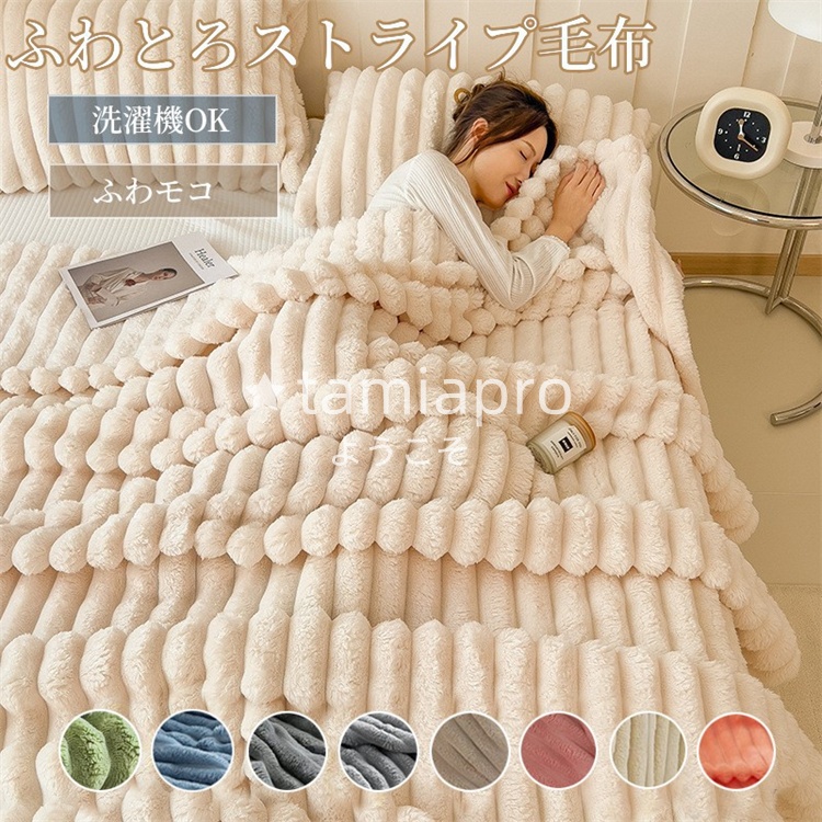 超PayPay祭 毛布 軽量 もこもこ毛布 ストライプ毛布 ブランケット ふわふわ 掛け毛布 ひざ掛け ブランケット 暖かい 毛布 薄手 冷房対策 洗える