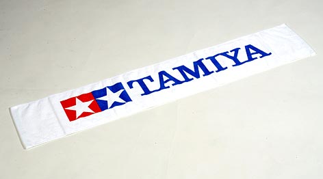 ホワイト地にタミヤロゴをあしらったマフラーサイズのタオルです。アウトドアで、温泉で、お部屋のインテリアとして・・・ 使い方は無限大。