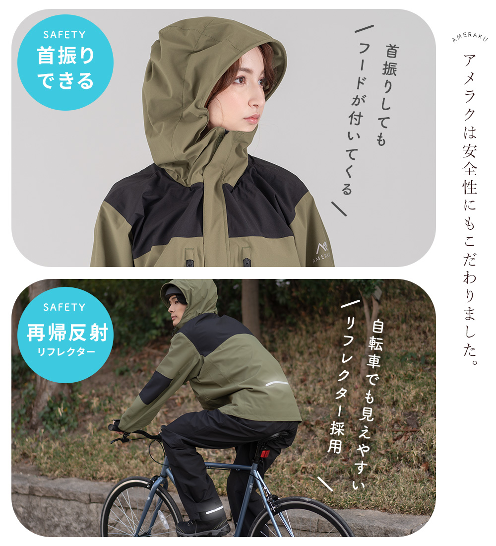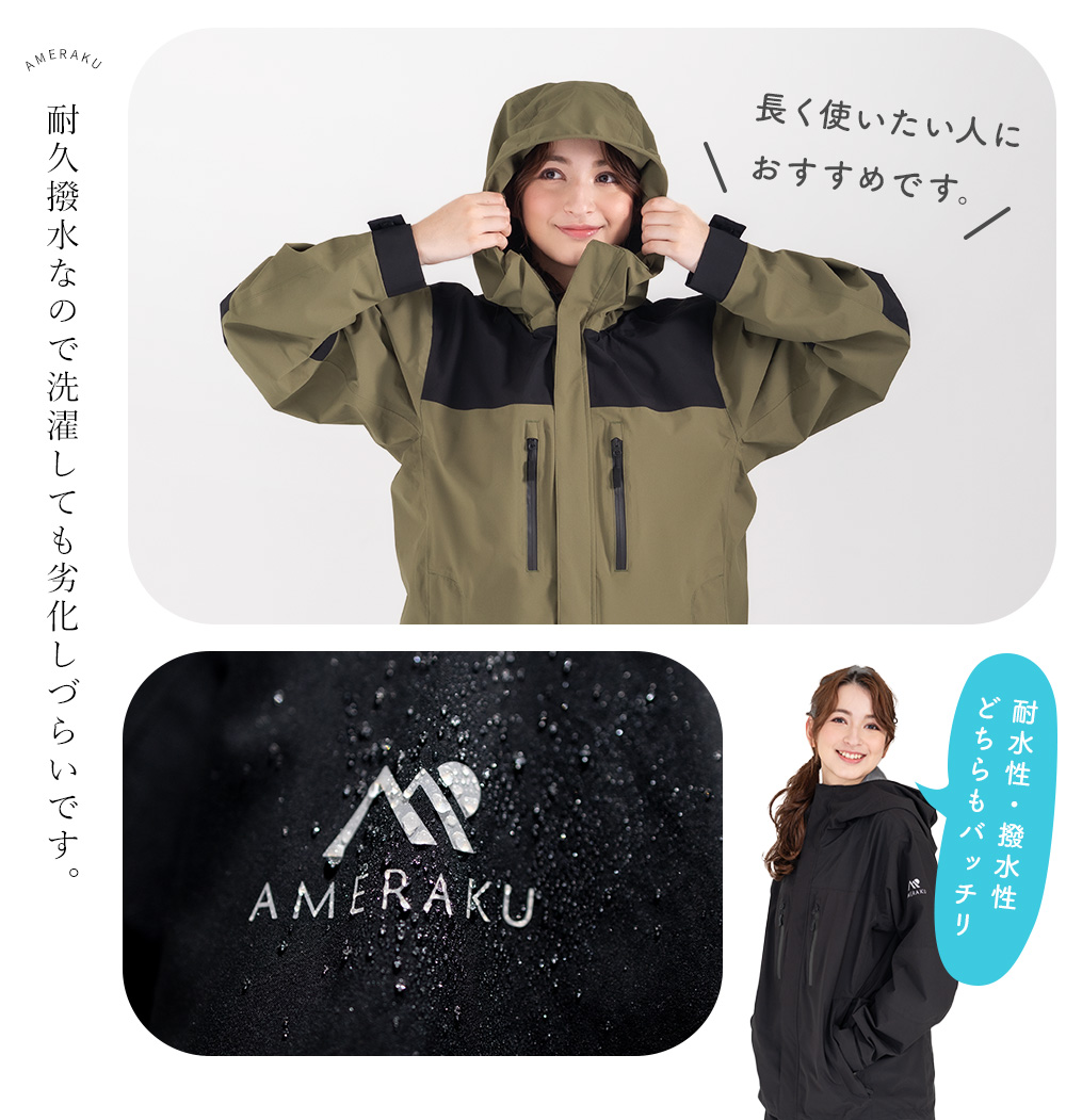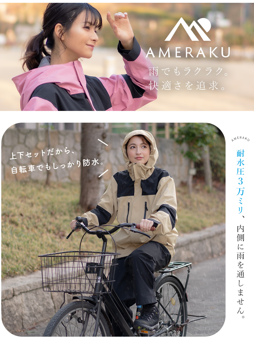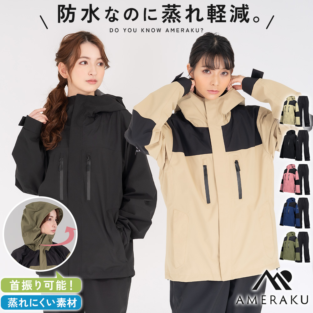 レインウェア 上下セット レインスーツ レディース 登山 自転車 ゴルフ カッパ 透湿防水 レインパンツ レインジャケット 雨合羽 アメラク