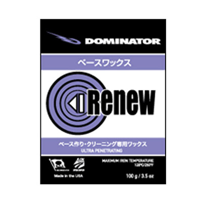 わずか2〜3回のホットワクシングで完璧なベース作りが可能。滑走面のケア専用ワックスです。ストラクチャーを入れたばかりの滑走面、購入したての新しい板、粗い雪を滑走後の滑走面の手入れ、またベースクリーニングに最適なワックス。RENEWはワックスのもっとも軟らかい成分と硬い成分をお互いの性質を損なわずにミキシングさせた画期的なワックス。RENEWを使用することにより、従来軟らかいワックスから硬いワックスへ段階を踏みながら滑走面を作っていった手間が省け、軟らかい成分はベースの奥深くへ、硬い成分はベースの表面へ浸透し、ベースコンディショニングとベース保護を一度に行うことが可能です。(滑走用ワックスではありません。)