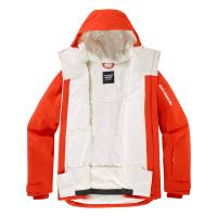 雨や雪、風を完全にシャットアウトしながら内側にこもる湿気を放出し、快適さを保ちます。10,000mmの防水性と10,000g/㎡/24hの通気性を備えています。