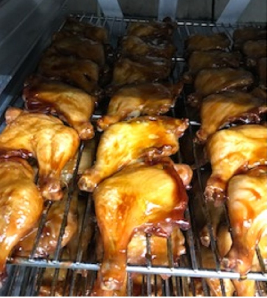180〜200℃で本格的に焼き上げたローストチキンです。2日,3日秘伝の調合で漬け込んであるから、噛めば噛むほどチキンの旨味が口いっぱいに広がります。