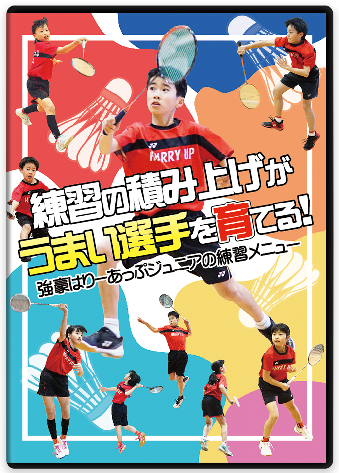 はりーあっぷジュニアにとって中心的なフットワーク練習であり、攻撃意欲を高めることを目的とする「インドネシアンフットワーク」から、自分より強い選手との試合を想定した「3対1ハイスピード」「2対1ゲーム」、前のショットから後ろに下げられた際のスピード感を高める「マレーシアンノック」など、理論に基づき設定された練習を1つ1つ分かりやすく解説しています。