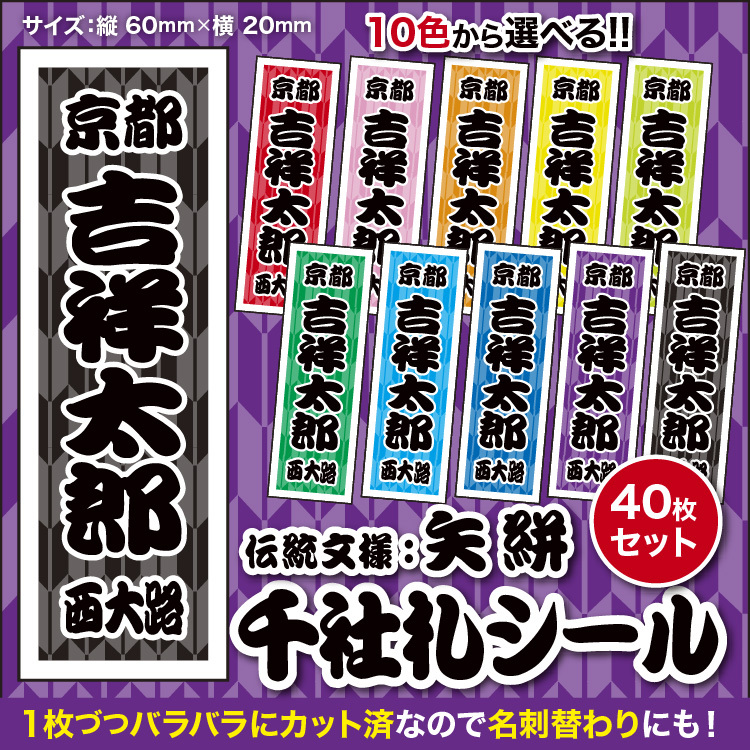 【千社札40枚入】伝統文様:矢絣(全10色)和柄 和風シール 日本