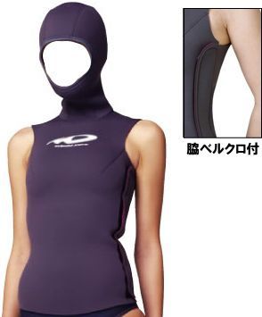 フードとベストを一体。保温効果が高く、水温が低かった場合などウエットスーツ用のインナーとして最適。浮力への影響も極力抑えウエイト量もほとんど同じで対応できます。