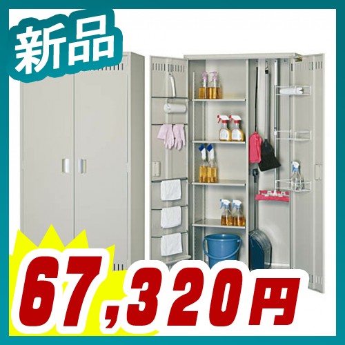掃除用具入れ 両開きワイドタイプ スチールロッカー 収納【車上渡し】 完成品 鍵なし グリーン購入適合商品メーカー: