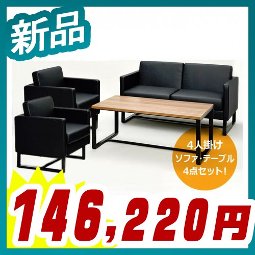 スクエアタイプ応接セット 4点セット 4人掛け用 ループ脚 ソファセット ビニールレザー張りorファブリックメーカー: