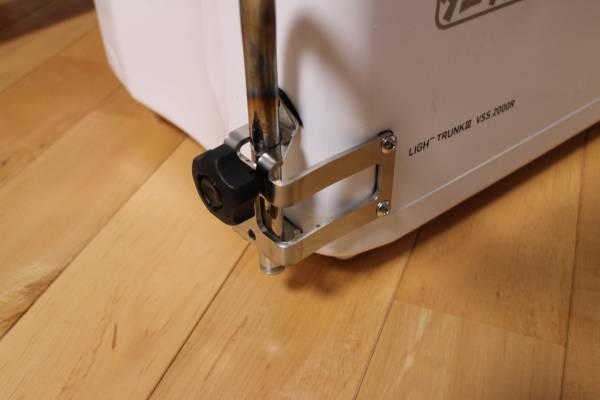 ねじ止めでクーラーボックス等の角を利用して取り付けるのでかなりの強度があります。