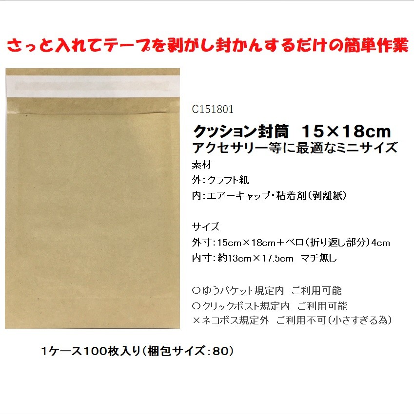 ★クッション封筒 15×18cm 茶色/100枚セット★